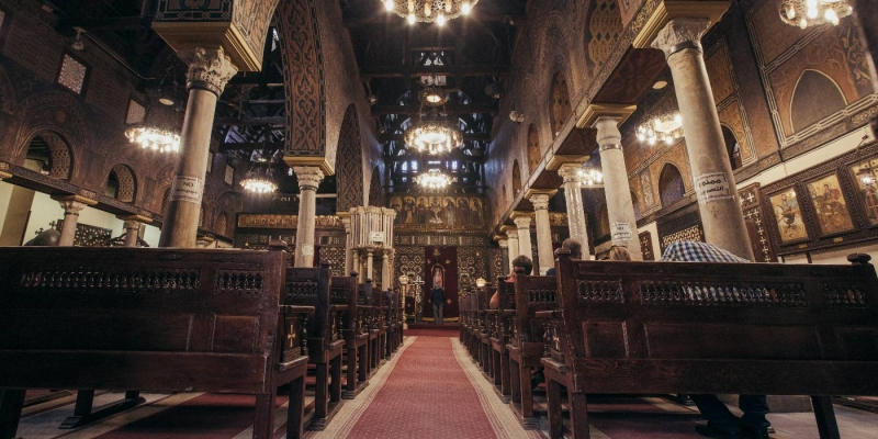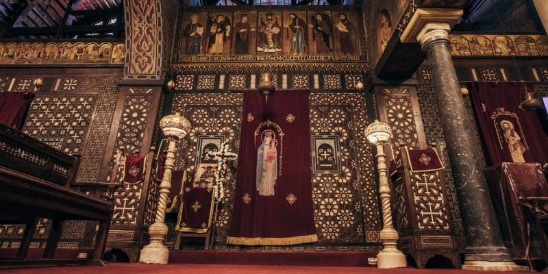 -La Iglesia Colgante: Esta iglesia, dedicada a la Virgen María, es una de las más antiguas de Egipto y recibe su nombre debido a su ubicación sobre las ruinas de una antigua puerta romana. Construida en el siglo III, la Iglesia Colgante es un destacado ejemplo de arquitectura copta, con su hermoso iconostasio y una serie de frescos que relatan historias bíblicas.