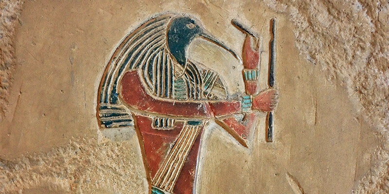 Dios de la sabiduría y la escritura, Thot era el escriba de los dioses, quien registraba los eventos del mundo y los actos de los hombres. Se le atribuye la invención de la escritura jeroglífica, y era un mediador vital entre los dioses y los humanos en los juicios del más allá.