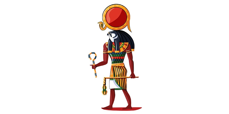 Ra, también conocido como Re, es el dios del sol, uno de los más importantes en la religión egipcia. Representado comúnmente con cabeza de halcón y el disco solar encima, Ra personifica la luz del sol, el calor y el crecimiento. Se creía que cada día recorría el cielo en su barca solar y viajaba por el mundo subterráneo en la noche, enfrentándose a varias adversidades y enemigos, incluido el serpiente Apofis, representante del caos.