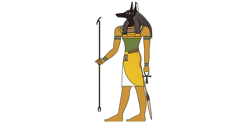 Guardián de los cementerios y guía de las almas hacia el más allá, Anubis se representaba con cabeza de chacal, un animal asociado con la protección y la purificación. Su presencia en los rituales de momificación aseguraba un tránsito seguro al otro mundo.