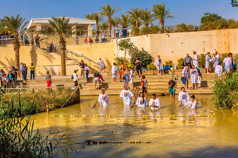 - Sitios bautismales:En la ribera del río Jordán se encuentran varios sitios bautismales, como Al-Maghtas en Jordania, donde los peregrinos pueden realizar ceremonias bautismales.
