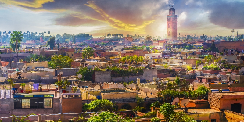Majestuosa y misteriosa, Marrakech despliega sus encantos entre edificios de arenisca roja que le han valido el sobrenombre de "Ciudad Roja". Este tesoro del norte africano cautiva a más de dos millones de almas viajeras cada año. Los muros de su legendaria Medina, reconocida como Patrimonio de la Humanidad por la UNESCO desde 1985, guardan secretos que se remontan a su fundación en 1070.