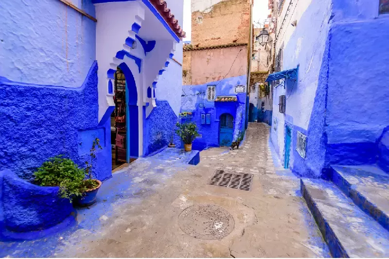 * Medina: La medina de Chefchaouen es una de las más hermosas de Marruecos. Pequeña y con poca gente, es fácil de explorar, con suficientes caminos serpenteantes, pero lo suficientemente compactos para no perderse demasiado. La mayoría de los edificios están pintados de azul-blanco, lo que les da un aspecto limpio y fresco, mientras que las baldosas de terracota añaden un sabor andaluz. Esta ciudad azul es famosa por su arquitectura única y sus casas pintadas.
