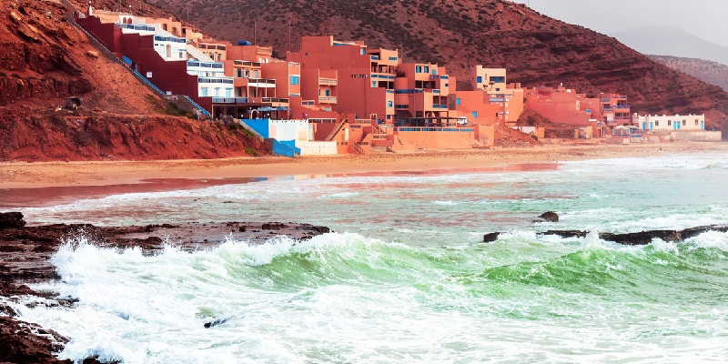 Veinte kilómetros al norte, Mirleft emerge cual guardián costero, coronado por su fuerte español de 1935. Sus arterias principales, cobijadas bajo arcadas rosadas, albergan rincones donde el aroma del café se mezcla con el arte local.